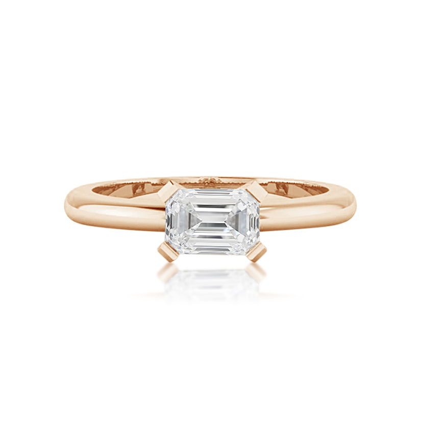 EAST WEST SOLITAIRE: Emerald Diamond, 4 Claw